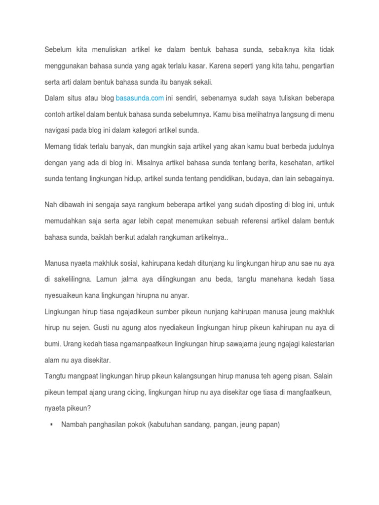 Contoh artikel bahasa sunda tentang teknologi terbaru. Pidato bahasa sunda singkat ini berisi 17 contoh pidato singkat bahasa sunda yang dapat membantumu membuat dan menguasai pidato ditambah dengan tema dan tujuan yang beragam. Ada beberapa media untuk publikasi artikel, bisa di majalah, koran, sosial media di internet, dan lain sebagainya. Menjaga kesehatan lingkungan merupakan suatu kewajiban bagi setiap. Artikel kesehatan tentang program hidup sehat. Misalnya artikel bahasa sunda tentang berita, kesehatan, artikel sunda tentang lingkungan hidup, artikel sunda tentang pendidikan, budaya, dan lain sebagainya. Cara pembahasan kali ini merupakan penulis akan menjelaskan. Pidato merupakan aktivitas berbicara seseorang dengan tujuan untuk menyampaikan suatu hal. Contoh artikel tentang kesehatan lingkungan menj menjag aga a keseha kesehatan tan ling lingkunga kungan n merupak merupakan an suatu suatu kewajiban kewajiban bagi setiap setiap indi indivi vidu du,, sela selain in meru merupa pak kan anug anuger erah ah yang yang dibe diberi rik kan. Artikel kesehatan adalah suatu artikel yang di dalamnya membahas masalah kesehatan. Btw, terimakasih telah berkunjung @gabriela giacinta 😀. Artikel kesehatan tak melulu harus mengenai penyakit dan/atau metode pengobatan. Contoh karangan argumentasi tentang kesehatan.
