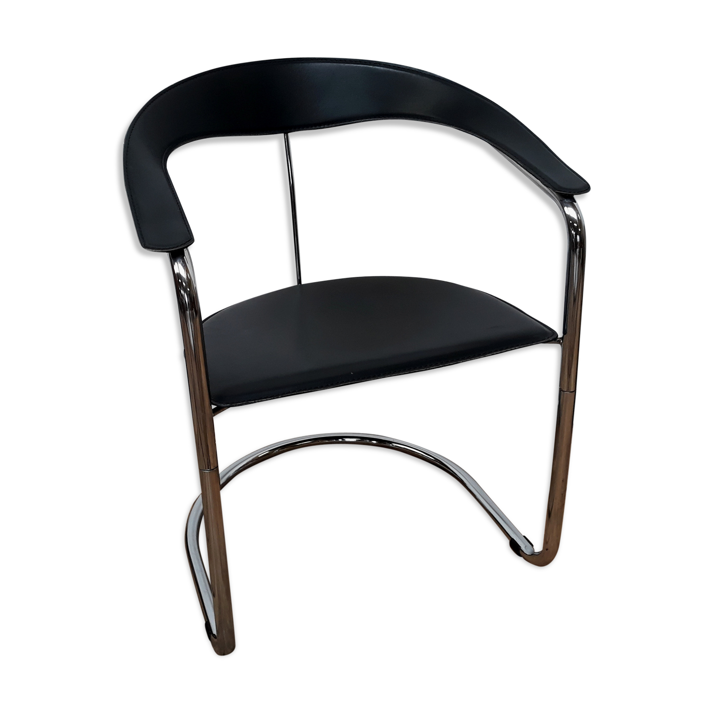 Fauteuil Cuir Et Metal: L'acier et le cuir s'associent pour une silhouette légère et unique.